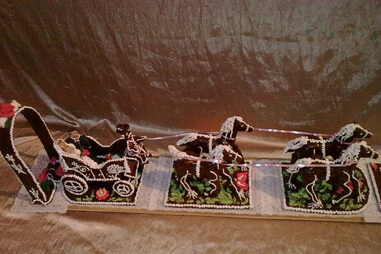 Az alapanyag a pirított cukor és dió, melynek nehézsége a forró anyag kidolgozása, formázása, amiből készülnek a grillázs munkáim. Sok-sok alkalomra rendelik.