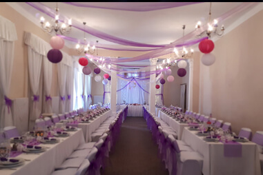 - Belső tér dekoráció: virág, lufi, lampion, tollak, szalagok, függők, fények...