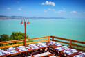 - A terasz teljes mértékben árnyékolható és szemerkélő esőben ételüket, italukat kedves vendégeink a balatoni panoráma társaságában.