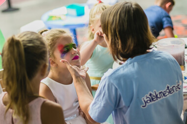A gyerekek csillogó szemmel válogathatnak a szebbnél szebb arcfestési minták, léggömbből formált figurák közül, játszhatnak társasjátékokkal vagy kedvükre ugrálhatnak – természetesen felügyelet mellett – a trambulinon, ugrálóvárban.