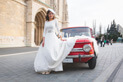 Esküvői autónak piros, figyelem felkeltő színe miatt kiváló választás. - Ár: 9.990 Ft/óra helyszíntől függően.