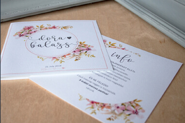 Nyomtatott esküvői dekorral, elsősorban meghívókkal foglalkozom.