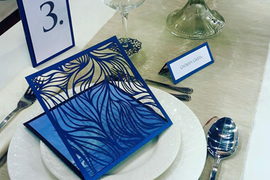 Cégünk egyedi tervezésű lézervágott meghívókat, asztalszámozókat (menükártya- és itallap is egyben), ültetőkártyákat és pohárdíszeket készít esküvőre és más jeles alkalmakra.